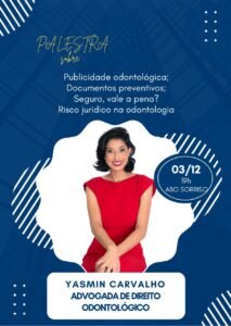 Na sequência, a abordagem será voltada para a gestão de risco na odontologia, tema apresentado pela advogada Yasmin Carvalho, especialista em Direito Odontológico.
